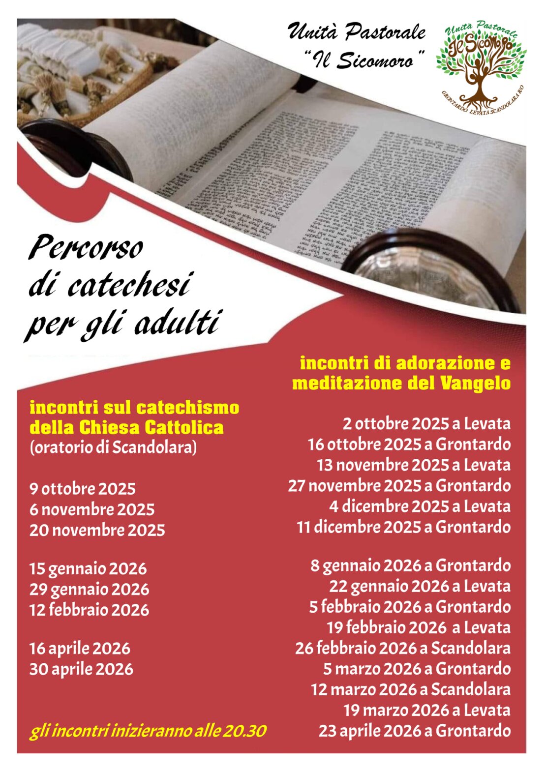 Convinti dell'importanza di puntare molto sulla formazione degli adulti, nella nostra unità pastorale sono previsti diversi momenti per alimentare la fede di chi dovrebbe essere testimone della stessa presso le nuove generazioni.