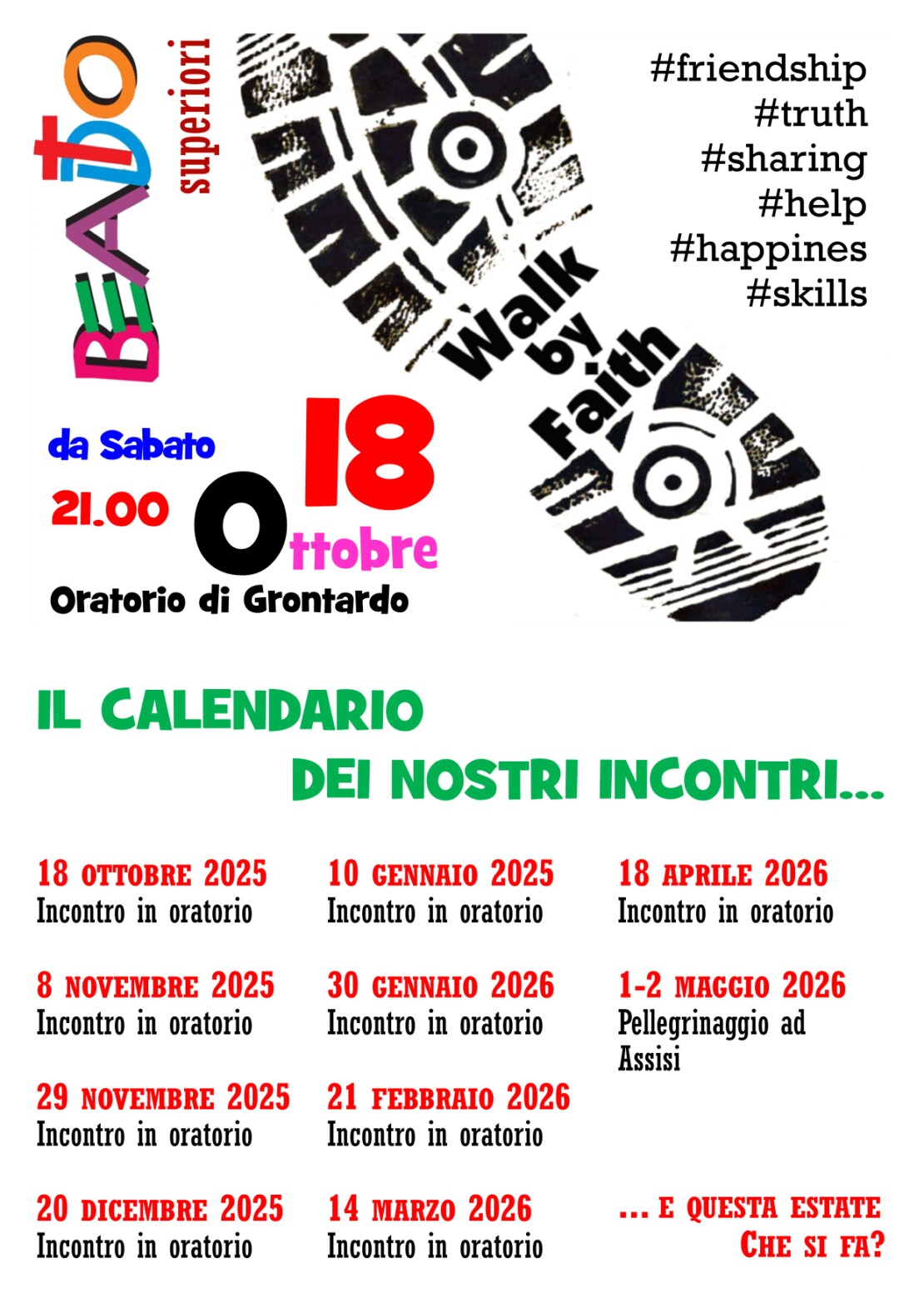 Questo il calendario degli incontri previsti per questo anno pastorale: